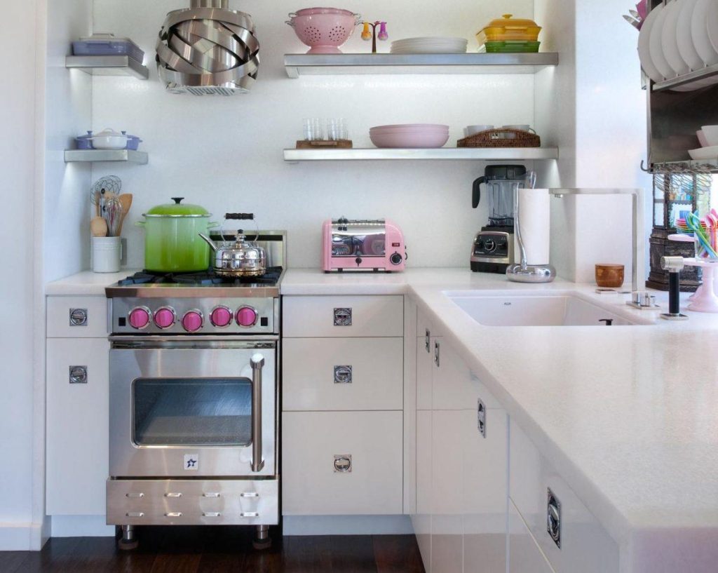 Go for neutral finishes that complement your kitchen and fit easily in cabinets. Stackable or cordless designs reduce clutter.
